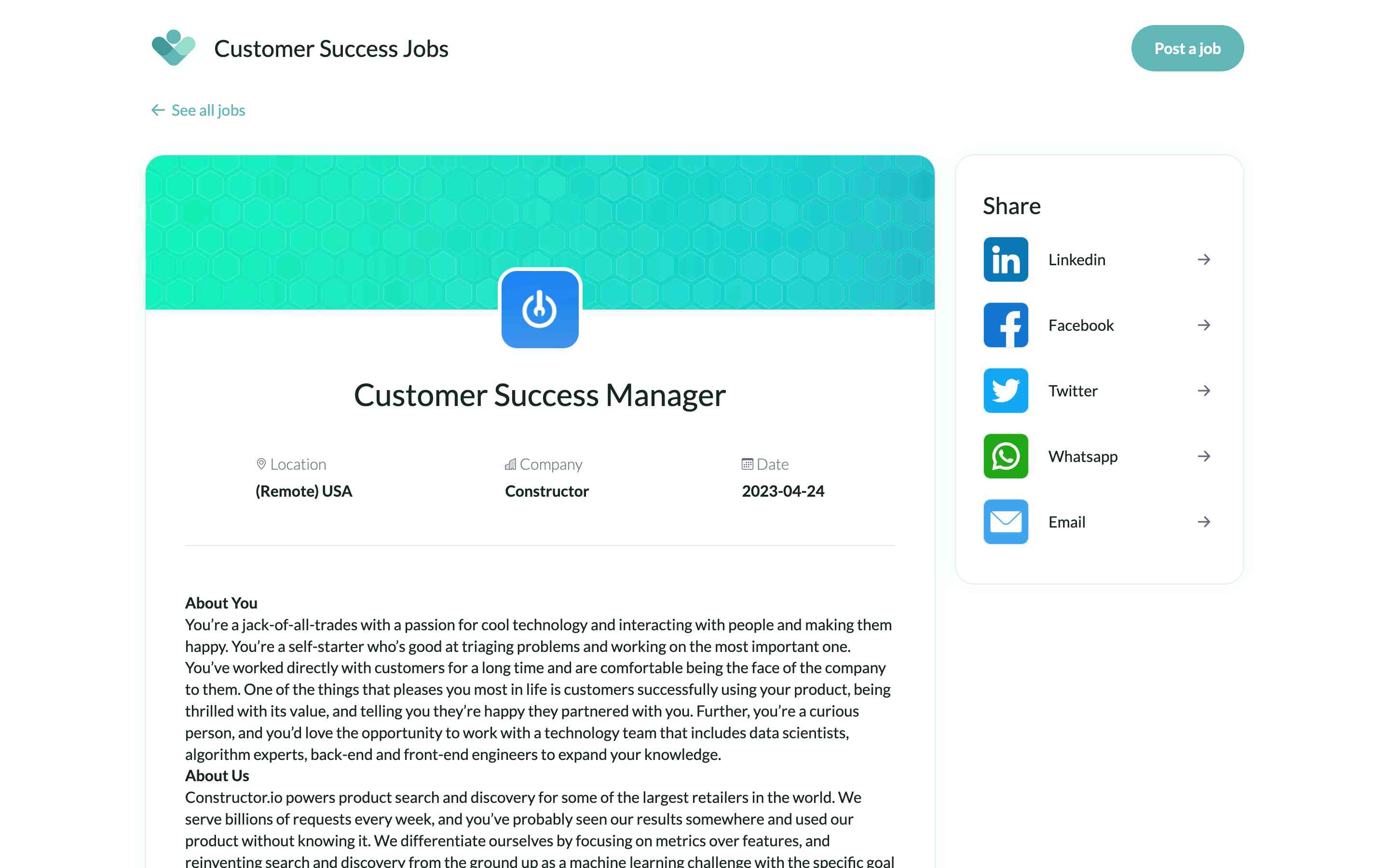 Overall, Customer Success Jobs is a reliable and valuable resource for job seekers and companies alike. Its comprehensive job postings, subscription options, and social media presence make it an excellent platform for anyone in the job market.