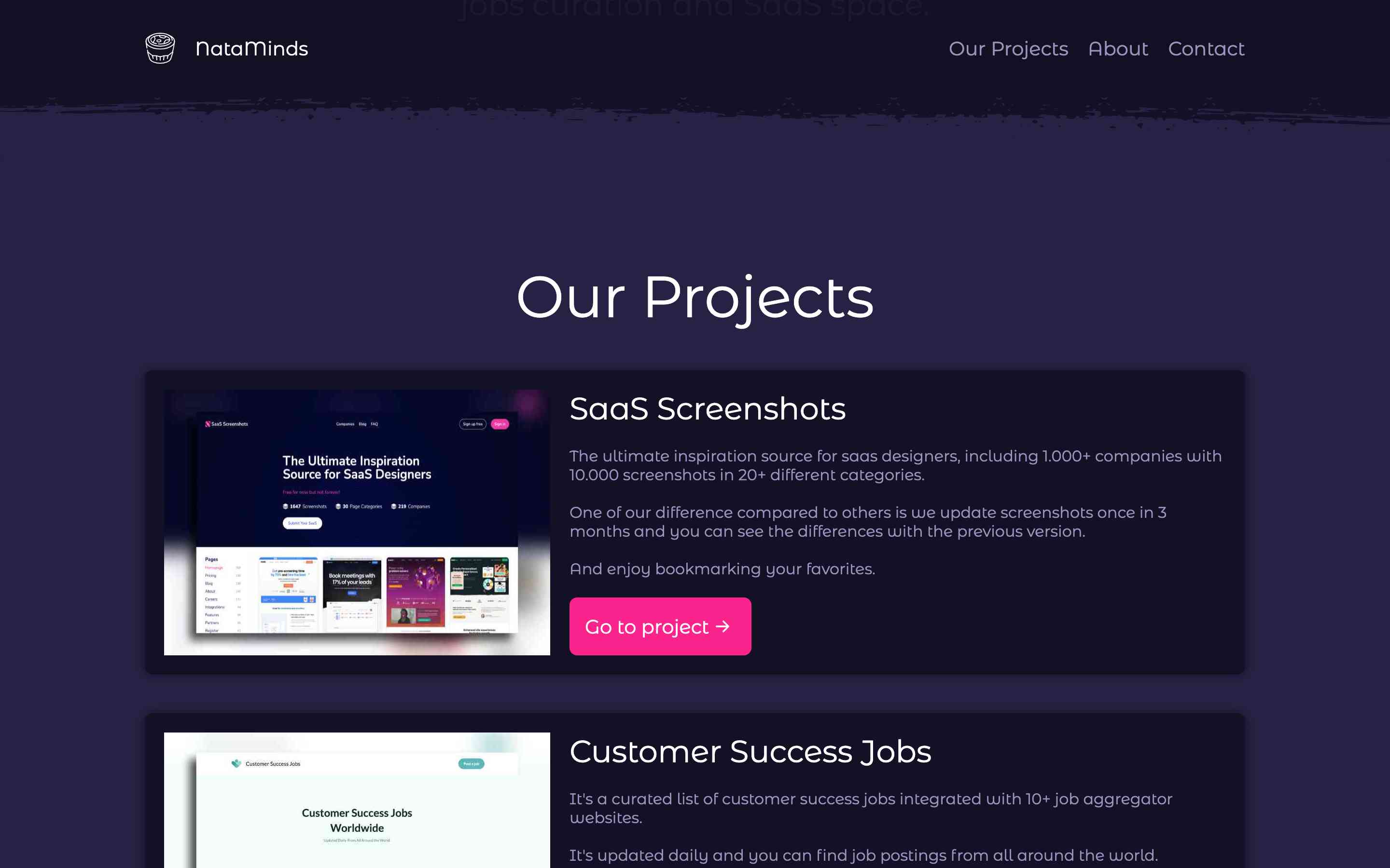 Nataminds is a company dedicated to creating innovative and exciting web-based products. Our focus is on developing side projects that have the potential to revolutionize the jobs curation and SaaS space.