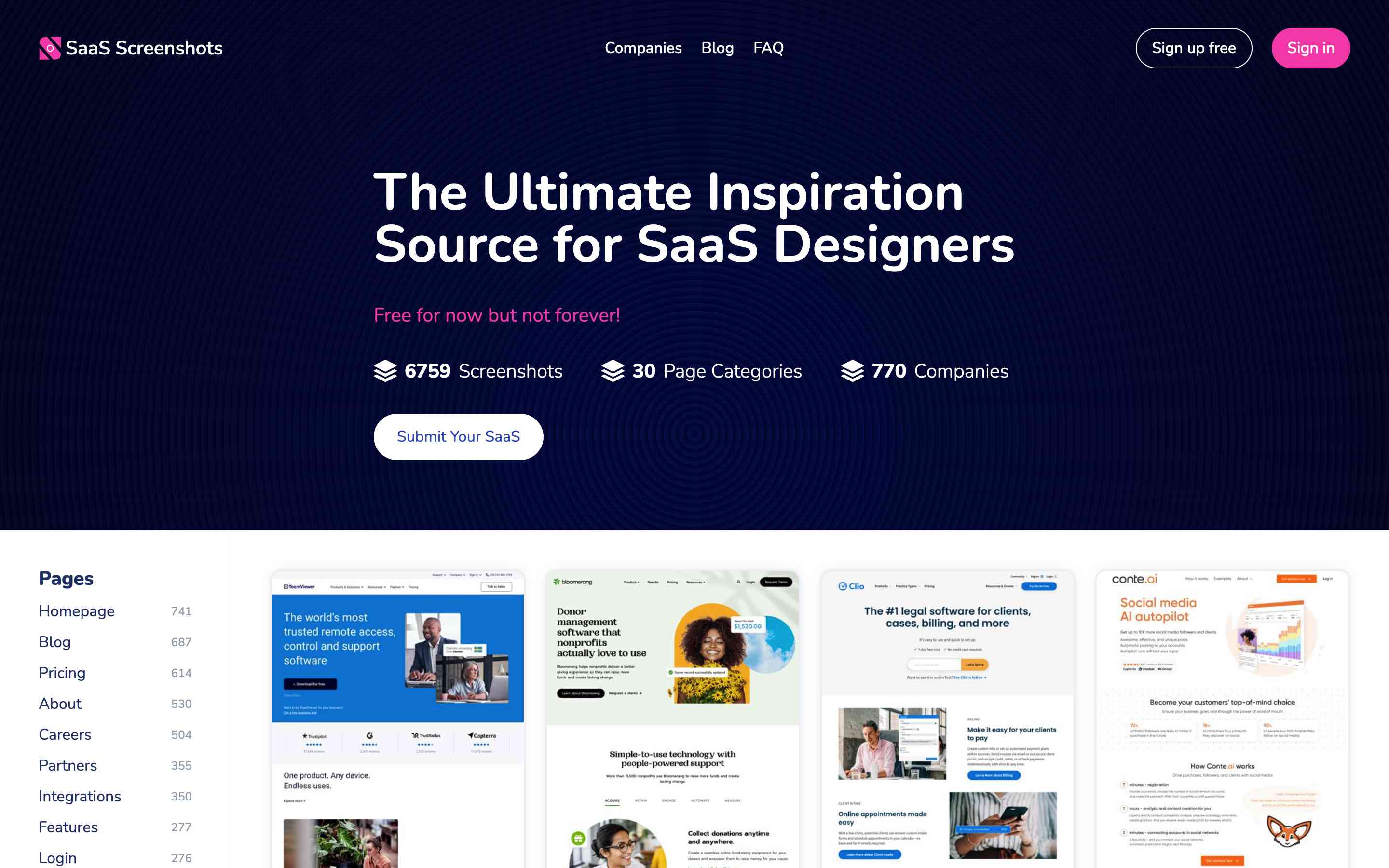 SaaS Screenshots is a website created to inspire designers and developers in the field of SaaS. Our goal is to provide a platform where users can explore and discover the latest design trends and user interface elements used in SaaS websites. We visit the websites of SaaS companies on our list and take screenshots of their web pages. We save these screenshots in our database, where we organize and publish them for our users.
